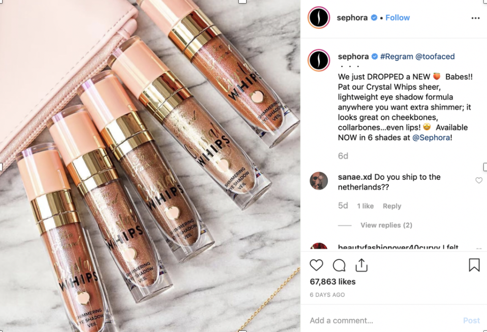 (Below is an Instagram post from Sephora a make-up brand, advertising a product. Have a look at the number of likes for instance.)